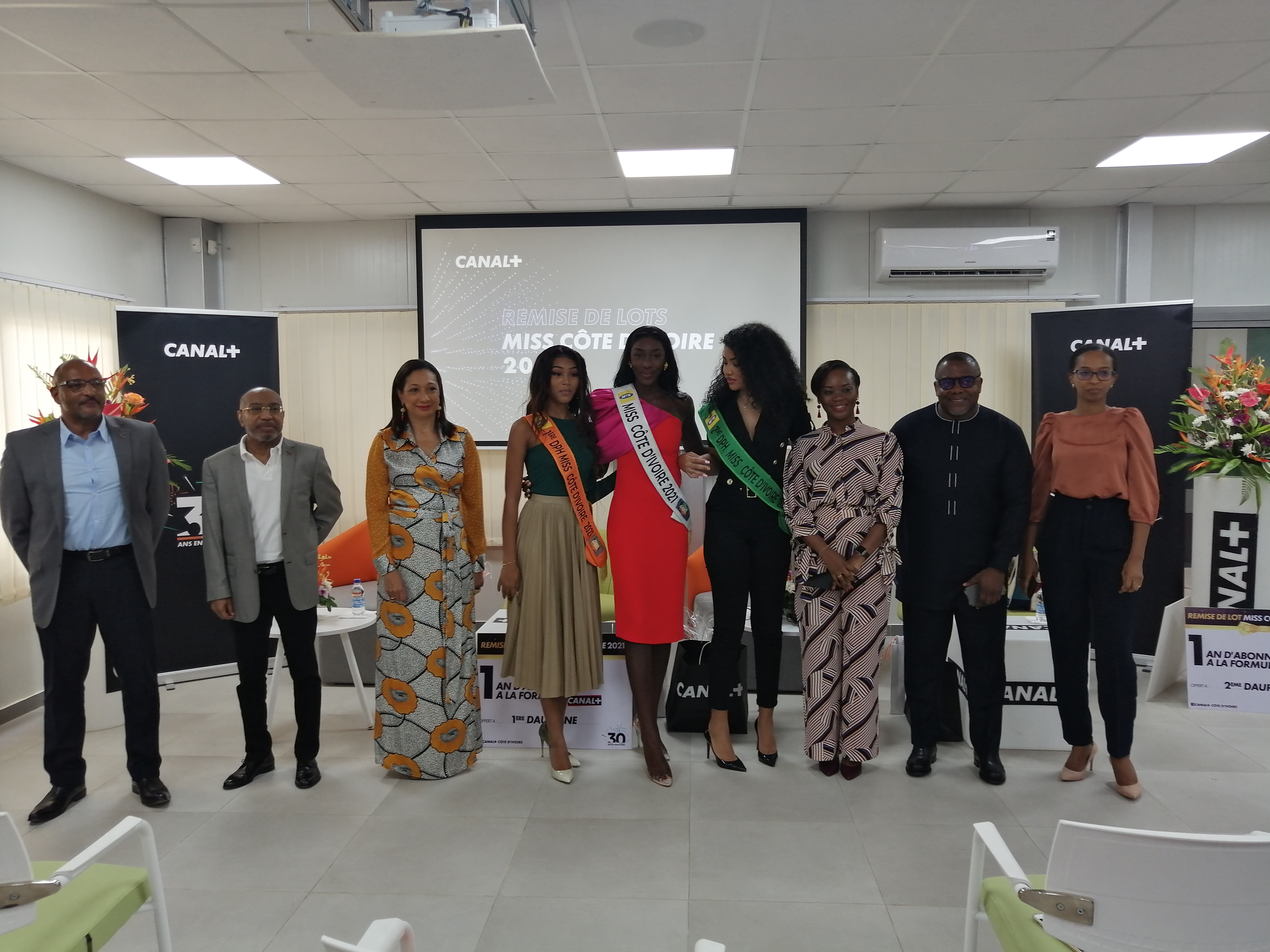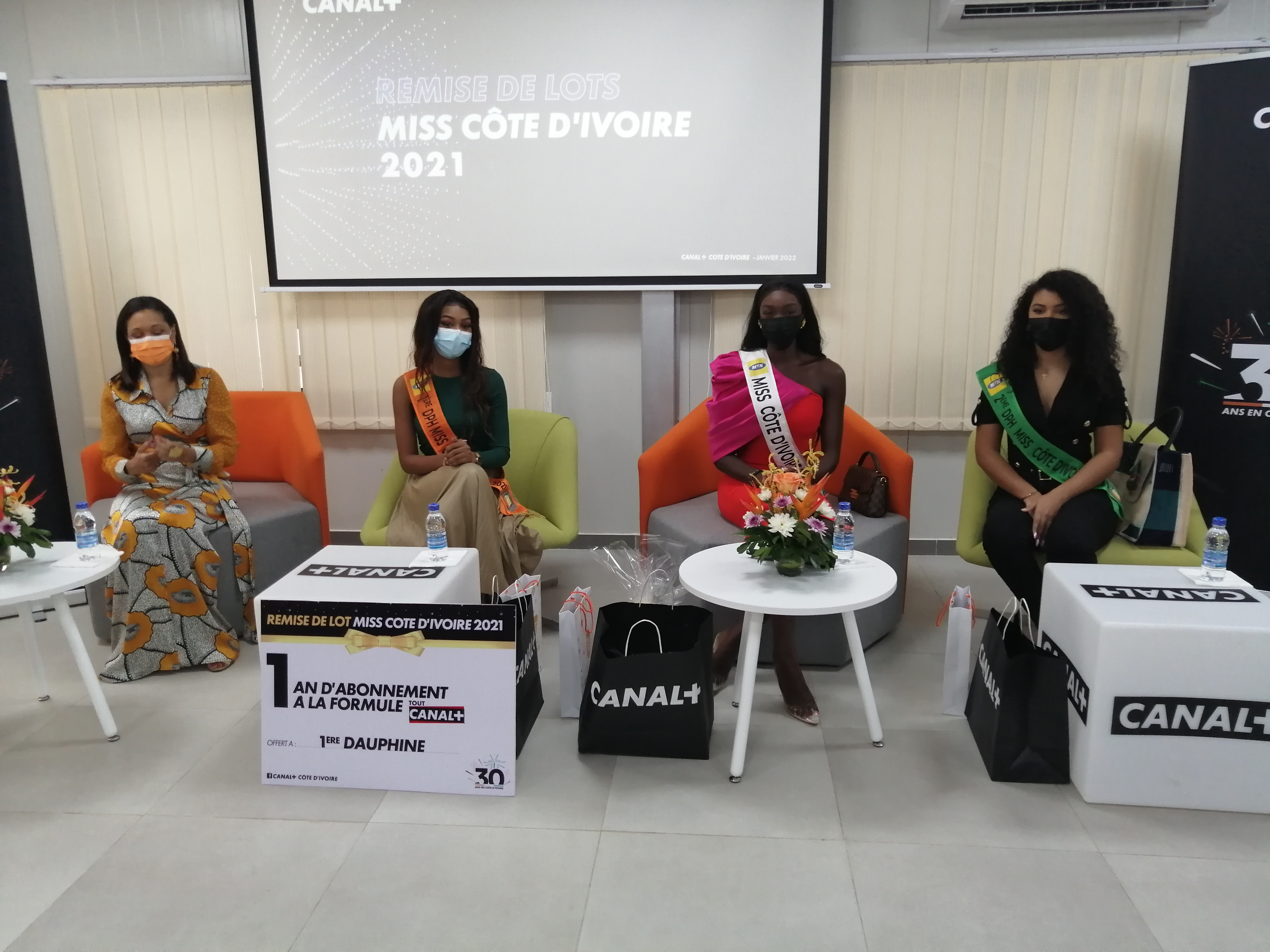 Le trio Miss Côte d’Ivoire 2021 (la Miss et ses dauphines) a reçu, jeudi 13 janvier 2022 dans les locaux de Canal+ Côte d’Ivoire, des récompenses et félicitations de la part de la chaîne cryptée, qui s’était engagée à accompagner le Comité Miss Côte d’Ivoire dans la recherche des plus belles pépites ivoiriennes.