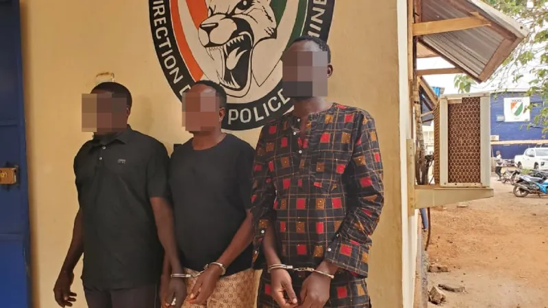 Les personnes interpellées sont Z. Mahamady, alias Hamed, 41 ans, de nationalité burkinabè, commerçant domicilié à Man, au quartier Kpangouin ; D. Moussa, alias Legros, 35 ans, burkinabè, planteur domicilié à  Lakota ; et B. Abdoulaye, dit Ablo, 41 ans, commerçant, père de six enfants, résidant à Yopougon, au quartier Maroc. Ils sont poursuivis pour association de malfaiteurs et vol à main armée.